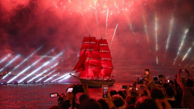 Наиболее зрелищным и запоминающимся моментом главного праздника выпускников традиционно считается проход по Неве «корабля капитана Грея» под алыми парусами. «Словно сказка оживает», «Парусник плывет и ко мне», «Корабль появится для меня и моих одноклассников, для всех выпускников» — так отзываются об этом завораживающем зрелище вчерашние школьники.