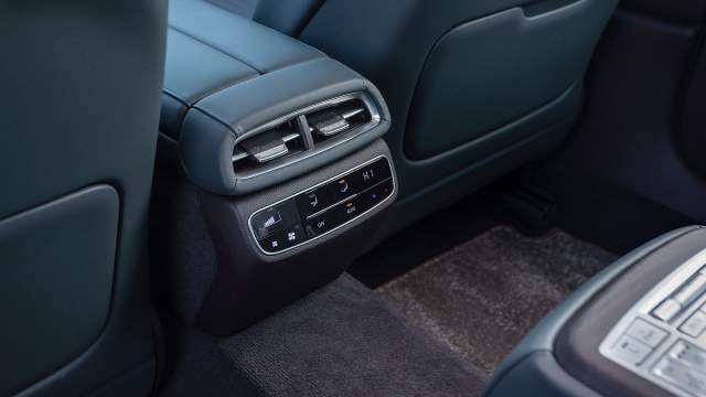 Посадка низкая, водителя и пассажира разделяет широкая консоль, отчего большой автомобиль кажется тесноватым, а в спортрежиме кресло поджимает тело. На втором ряду, наоборот, лимузинный комфорт — места больше, чем в G80. Переднее кресло с помощью кнопок на спинке можно максимально придвинуть вперед, высвободив место для ног. Половинки дивана в дорогих комплектациях снабжены электрорегулировками и подогревом, есть свой блок управления климатом и шторки на окнах. Вместителен и багажник: в качестве опции в него можно установить дополнительный, третий ряд сидений.