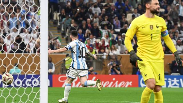 У этого финала было много афиш: мечта Месси, Месси против Мбаппе, а еще Лионель Скалони против Дешама. Тренерское противостояние с реализацией командами игрового плана действительно имело большое значение. Аргентина забрала начало матча и открыла счет после пенальти в середине первого тайма. Ди Мария завернул в штрафную, Дембеле отработал в защите и вошел в контакт ногами и рукой со спины. Польский судья Марчиняк назначил пенальти. Месси переиграл Льориса и обошел Мбаппе в гонке бомбардиров ЧМ-2022 (6 голов против 5).