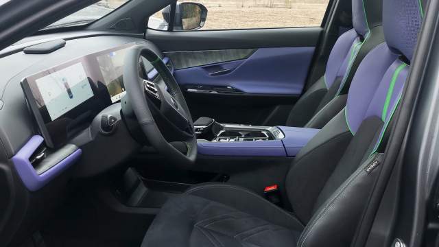 Короткая поездка по полигону показала, что кроссовер очень тих и быстр, благодаря двум моторам совокупной мощностью 578 л.с. разгон с места до «сотни» занимает 3,9 с. Впрочем, вылезли и шероховатости — руль установлен слишком высоко, в резких поворотах электромобиль заметно кренится, а на брусчатке полигона трясет пассажиров.