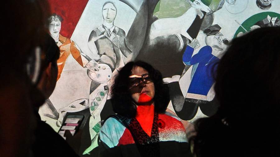 — Они висят на постоянной экспозиции, и они их нам не дали. Для них эта сложность связана с тем, что нужно искать замену. И мы решили, что вполне приемлемой подачей будут проекции. Конечно, мы могли бы взять поздние работы Шагала, но они не вписывались во временной контекст нашей выставки, — объяснила куратор.