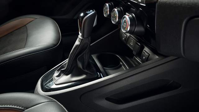 Селектор вариатора вроде тот же, но схема переключения семи фиксированных передач спортивная, с «минусом» наверху. Есть изменения и на подиуме селектора: кнопки обогрева сидений переехали на центральную консоль и теперь они более крупные, от «Гранты». Подстаканник один и более глубокий. Вполне возможно, что это не финальный вариант архитектуры подиума.