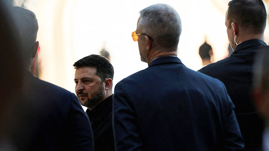 «Зеленский выглядел крайне напряженным: на видео видно и слышно, как он тяжело и неровно дышит, не может стоять на месте, постоянно переминается с ноги на ногу», — обращает внимание «РИА Новости».