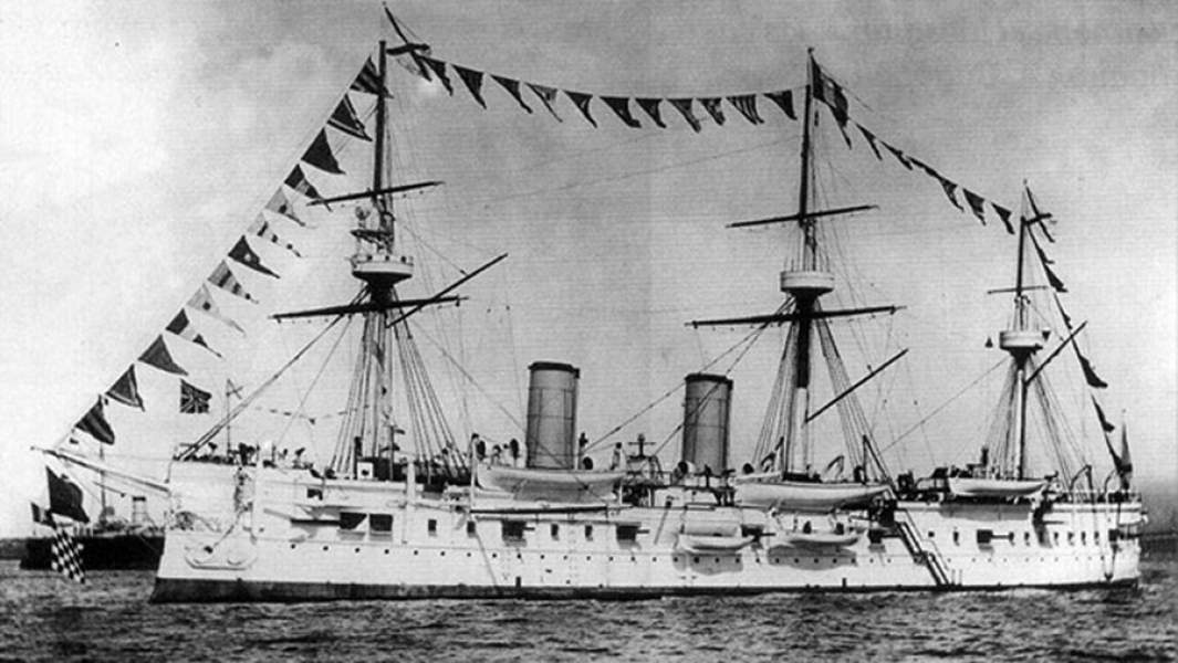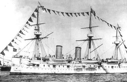 «Дмитрий Донской» к началу Русско-японской войны уже безнадежно устарел и числился учебным кораблем. Построенный в 1881–1886 годах, он был принят на флот как «полуброненосный фрегат».