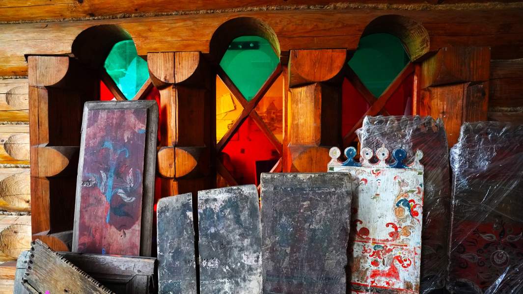 — В одной деревне стоял магазин, он был переделан из часовни. Мы фанеру, которой он был внутри отделан, вскрыли — а там холсты с росписями. Причем в переднем помещении, где был торговый зал и стояла печь, на стенах можно было увидеть ноги изображенных на росписях, в том числе, Спасителя, а в подсобке, прямо от пола, начинались их верхние половины, то есть когда-то это был один большой объем. Вот думаем теперь, что с этим делать, — рассказывает преподаватель, молодой человек в рабочей куртке, потирая выложенную на рабочий стол проржавевшую решетку.